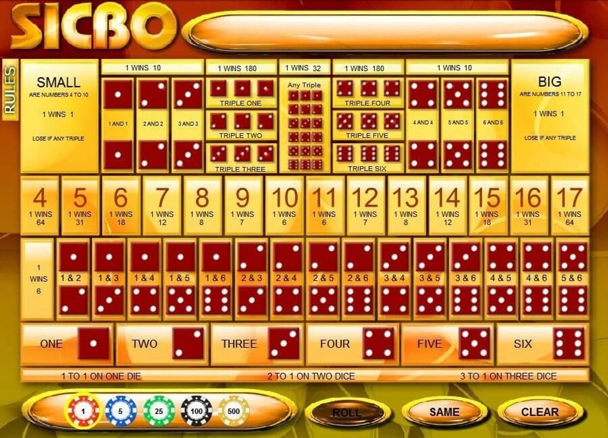 玩家押注三顆在器皿中轉動的骰子的旋轉結果,玩家可以同時押注在桌面上的一個或多個數字。遊戲的牌桌分割成幾個部分押注區域,每一個區域代表不同類的骰子結果組合。