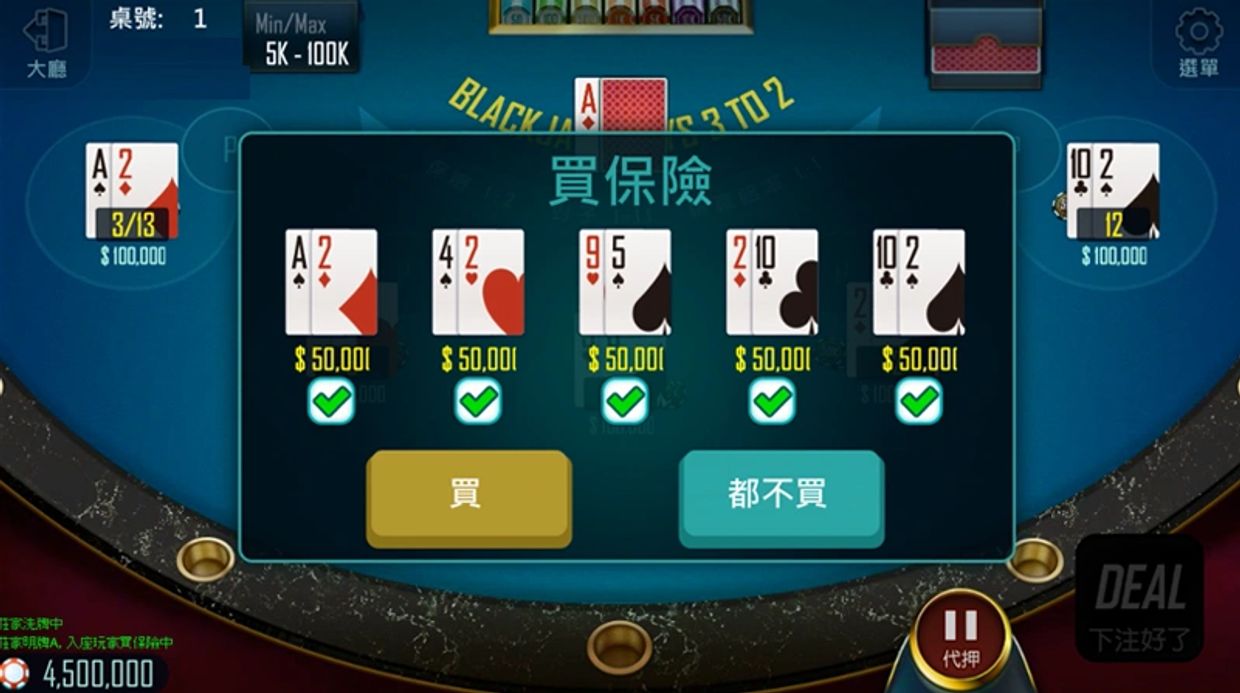 聽起來玩法是不是很簡單呢?叮叮…說起來簡單,但因為牽涉到賭金,所以還是有些隱含規則讓玩家和莊家可以去做操作,比如「保險」,假設莊家的明牌是A,你可以在遊戲繼續前下「保險注」,這樣若莊家剛好是21點則閒家獲得兩倍賭金;反之,閒家輸一半賭金。
